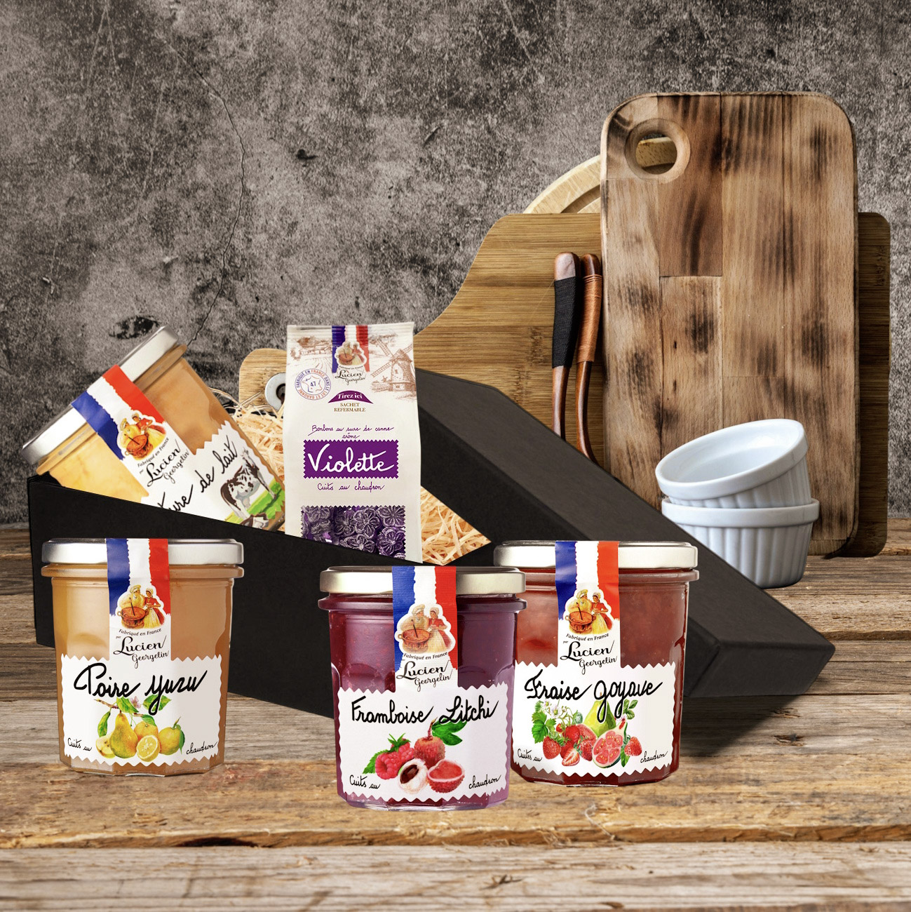 Luxusní dárkový koš s exotickými džemy a sladkými dobrotami od Lucien Georgelin obsahuje tyto produkty: