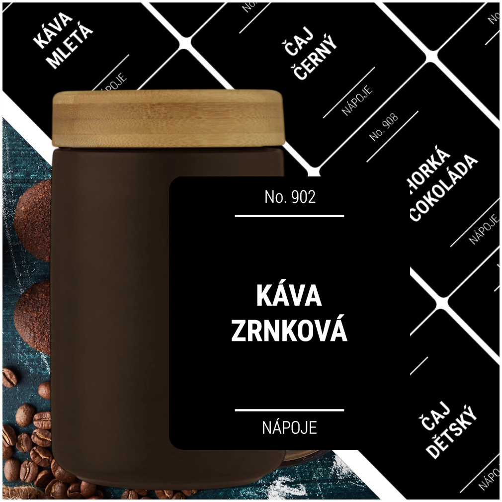 Sada NÁPOJE obsahuje etikety: káva mletá, káva zrnková, káva instantní, káva bezkofeinová, čaj černý, čaj ovocný, čaj zelený, horká čokoláda, čaj bylinkový, čaj dětský, kakao instantní, caro