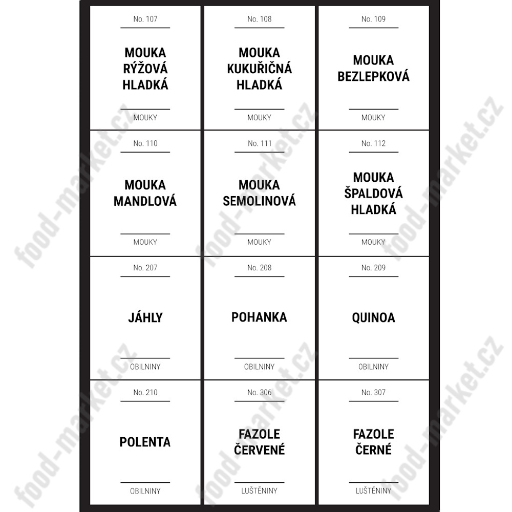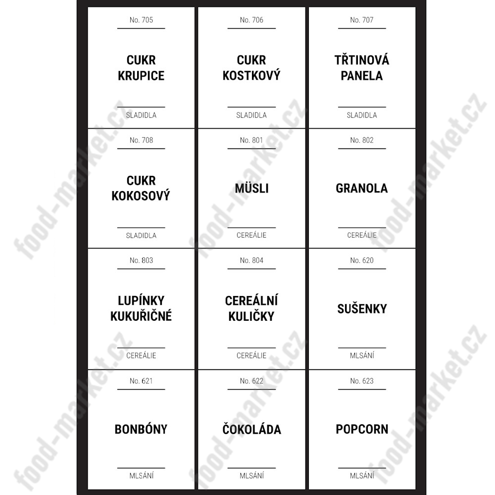 Úvod » DOPLŇKY » ETIKETY NA POTRAVINOVÉ DÓZY » etikety na potraviny hranaté bílé - sada B (36 ks)