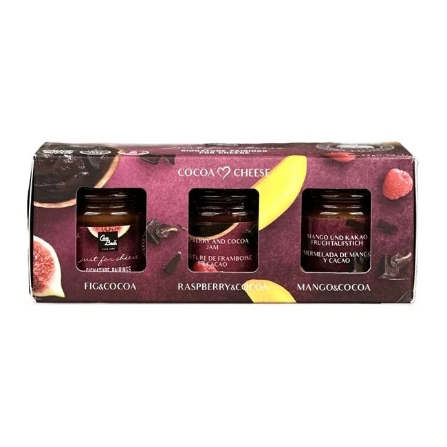 Trojice originálních ovocných confitů k sýrům v kombinaci s kakaem. Buďte originální a servírujte sýry s těmito skvělými confity.